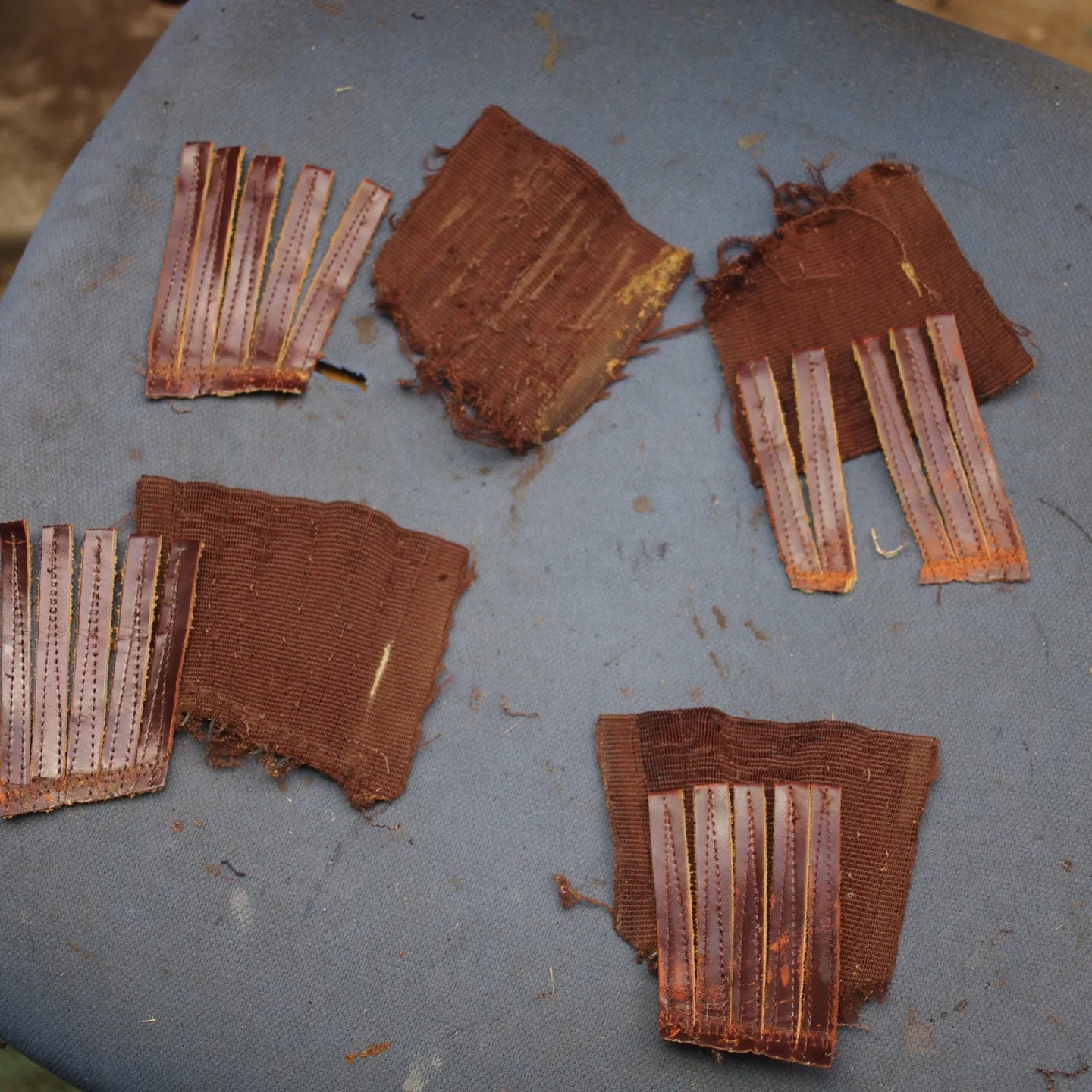次に、ヒダ部分からゴアゴムを外し、別工程でゴムをヒダに縫い付ける作業を行います。この分離作業により、ヒダの形状を崩さずに修理が可能です。