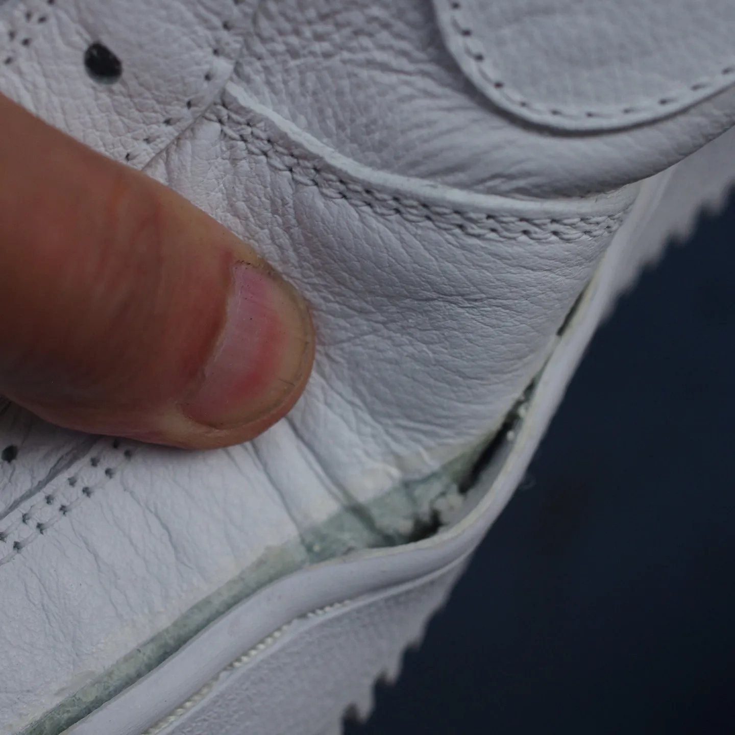 今回、修理の主目的となったのは、ソール内部のクッション材の劣化です。エアフォース・ワンに限らず、多くのスニーカーには衝撃吸収のためにポリウレタン(PU)素材やエアーバッグが内蔵されています。これらは新品時には素晴らしいクッション性を提供してくれますが、歳月の経過とともに**「加水分解」**という現象を避けることができません。