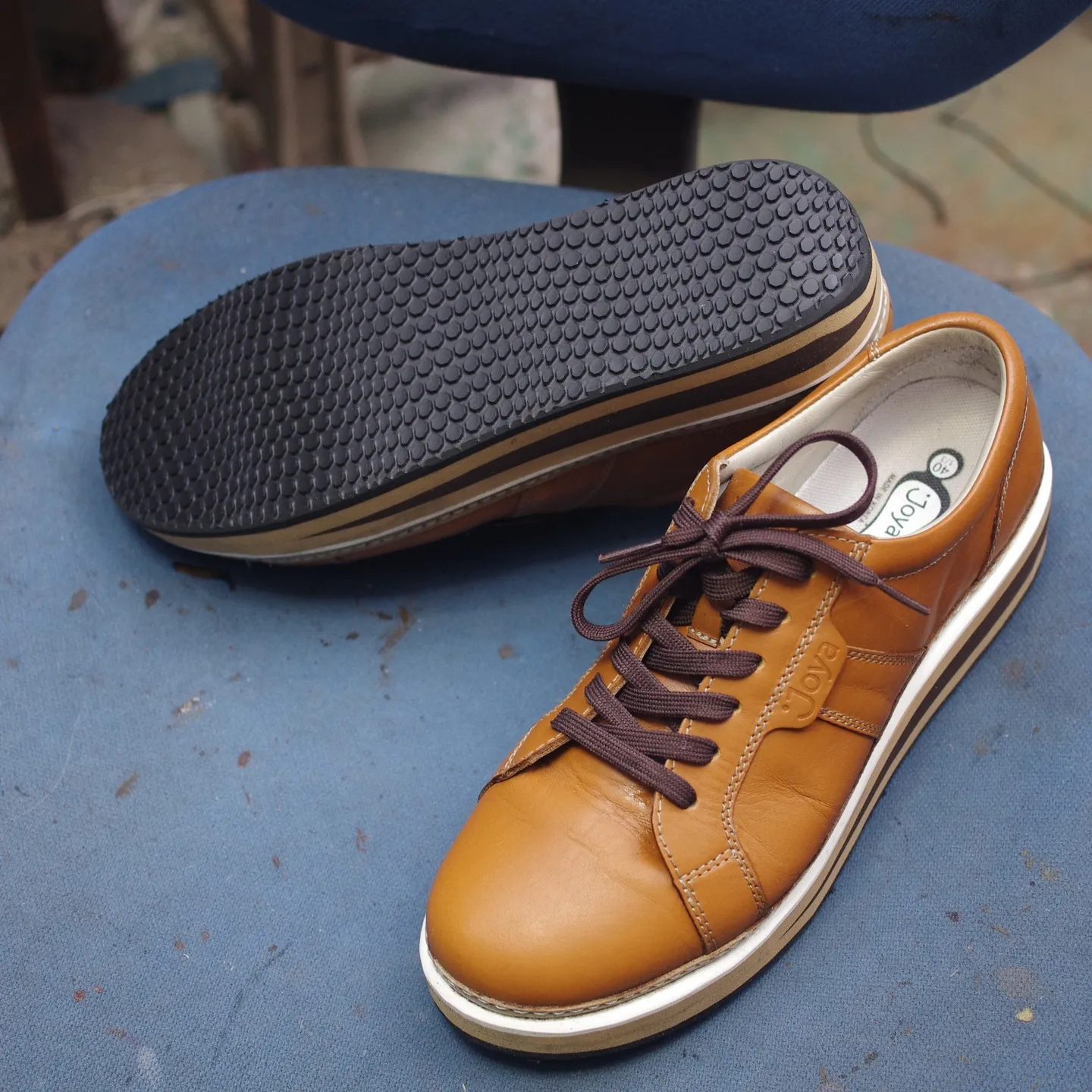 職人のこだわりポイント 今回使用したのは、耐久性とグリップ力に優れた「クロコ柄」のソール。見た目の高級感はもちろん、路面をしっかりキャッチする実用性を兼ね備えています。Joyaのボリューム感あるシルエットに、このエッジの効いたデザインが絶妙にマッチし、まさに「世界に一足だけのカスタムJoya」が誕生しました。