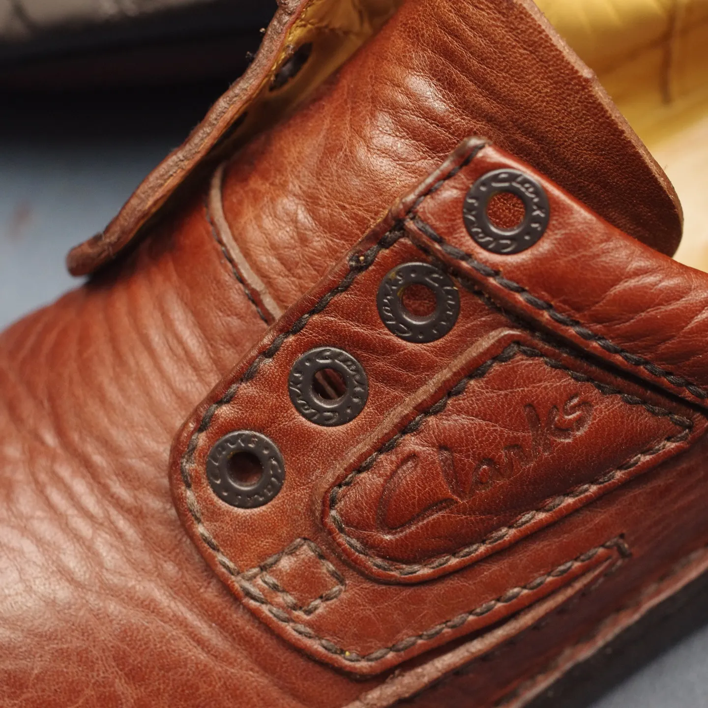 先日、私たちの工房に一人の紳士が訪ねてこられました。長野県からわざわざ足をお運びいただいたO様です。その手には、長年大切に履き込まれたことが一目でわかる、**Clarks(クラークス)の「Nature II(ネイチャー2)」**がありました。