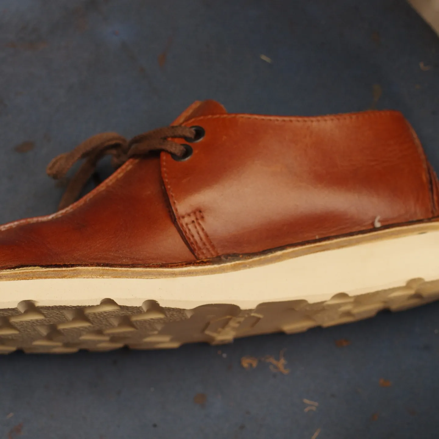 今回採用した**Vibram 4014(通称:クリスティソール)**は、ワークブーツの王道レッドウィングなどにも採用される、信頼の厚いソールです。