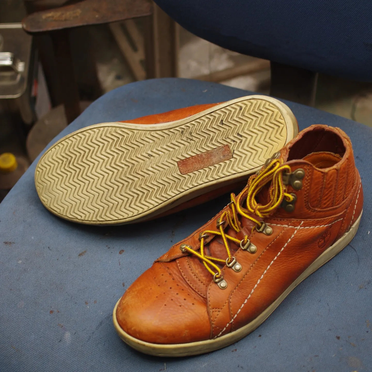 通常、ティンバーランドのソール修理(オールソール)は、メーカー独自の専用ソールを使用しているため、**「元と全く同じ部品」を手に入れることは困難です。しかし、そこで諦めるのではなく、「元よりも価値のある一足にする」**のが私たちの腕の見せ所です。