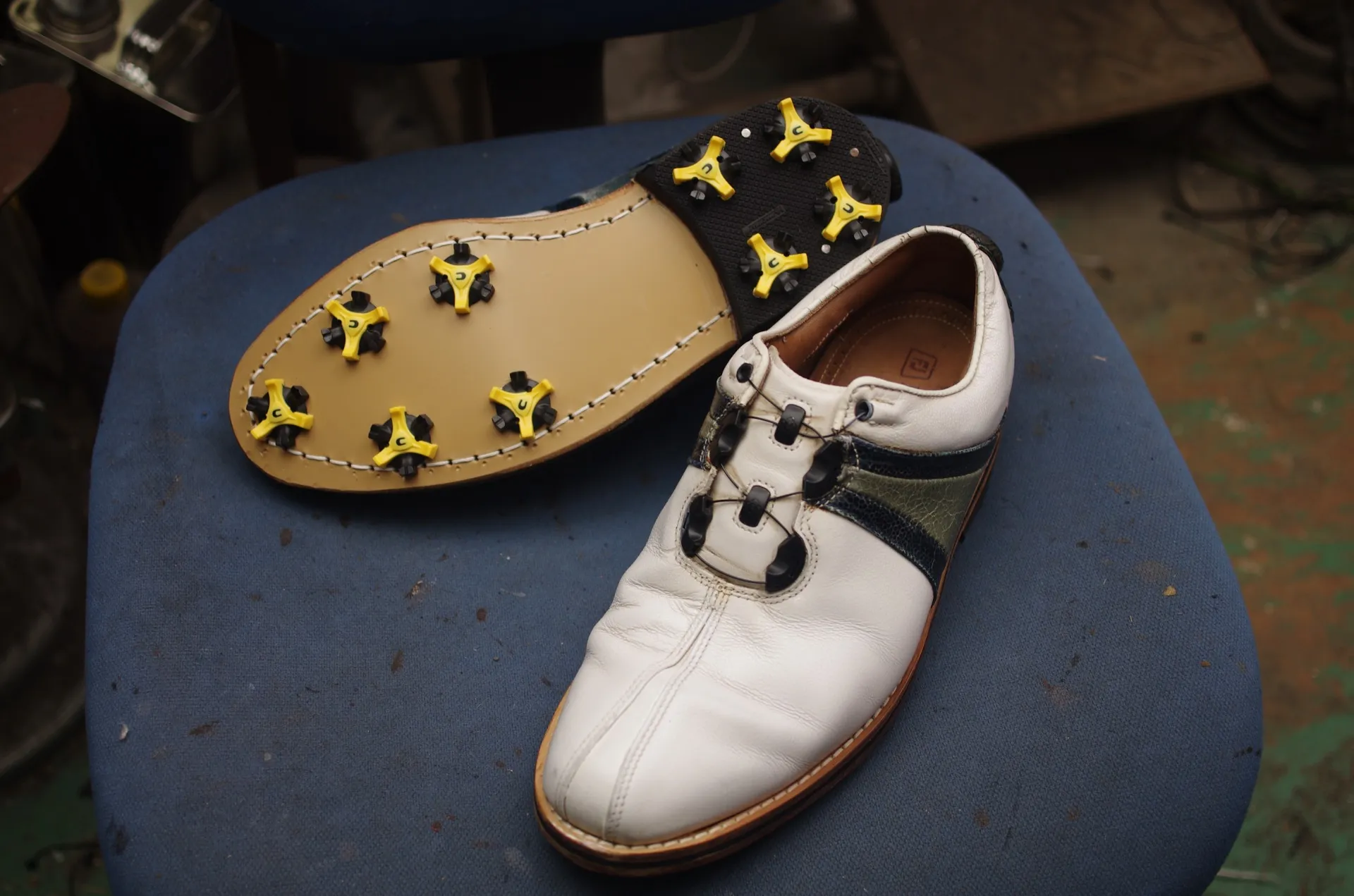 【FootJoyアイコン修理】加水分解を克服!本革ソール&ソフトスパイク化で蘇る職人技の極意