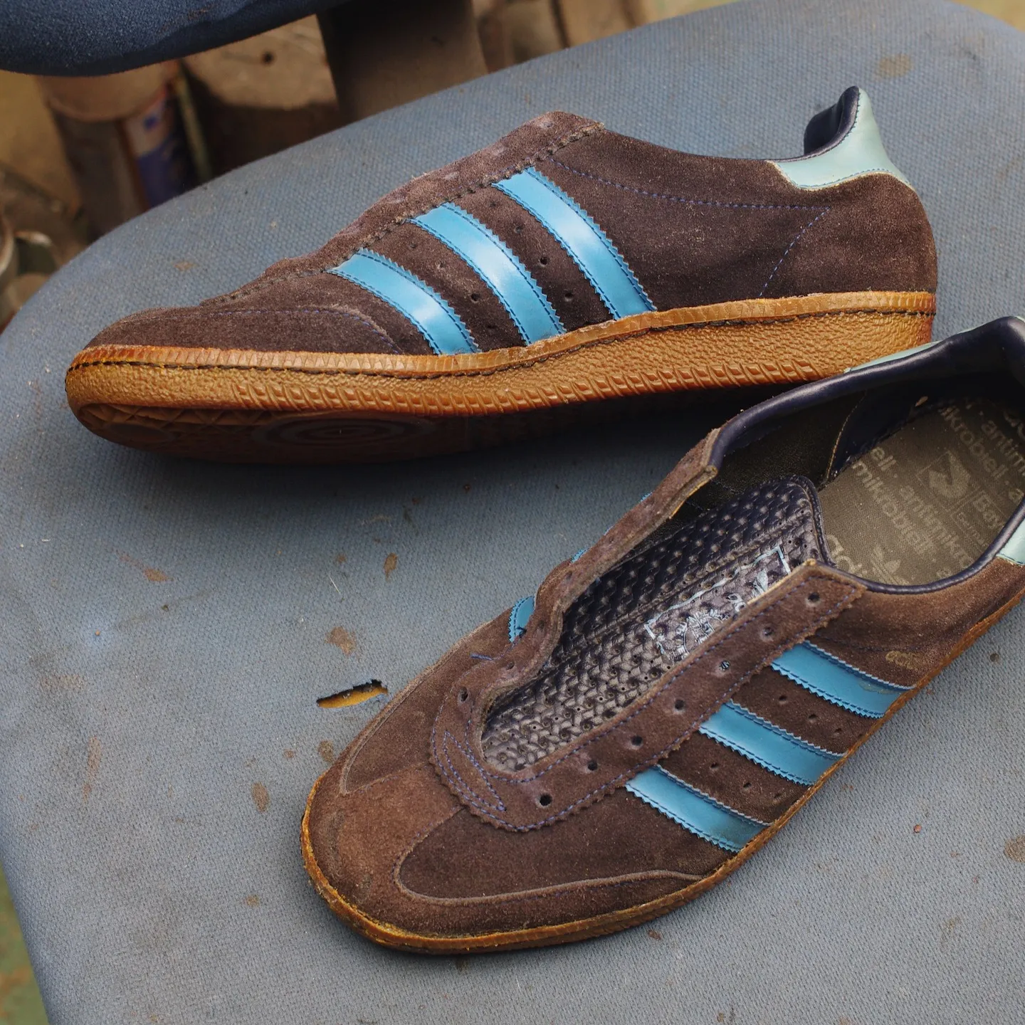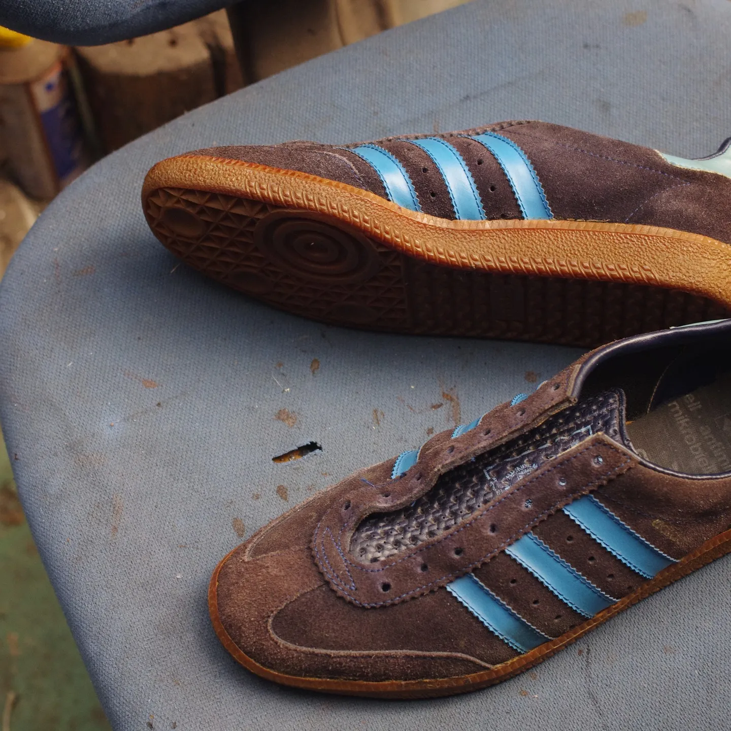 実際の修理事例として、広島県のK様がご依頼いただいたadidasスニーカーの底剥がれ修理があります。このケースでは、まずソールを慎重に分解し、ボンドでしっかりと再接着。その後、側面をオパンケ縫いで丁寧に補強することで、もともとボンドのみだった仕様よりも格段に耐久性がアップしました。