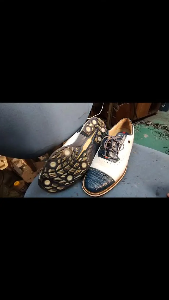 FootJoyのアイコンモデルです。 ソールが加水分解したので ソフトスパイク交換式にてオールソール交換修理しました。 #FootJoy #マッケイ縫い #本革ソール #ソフトスパイク交換式お客様の靴に込められた…